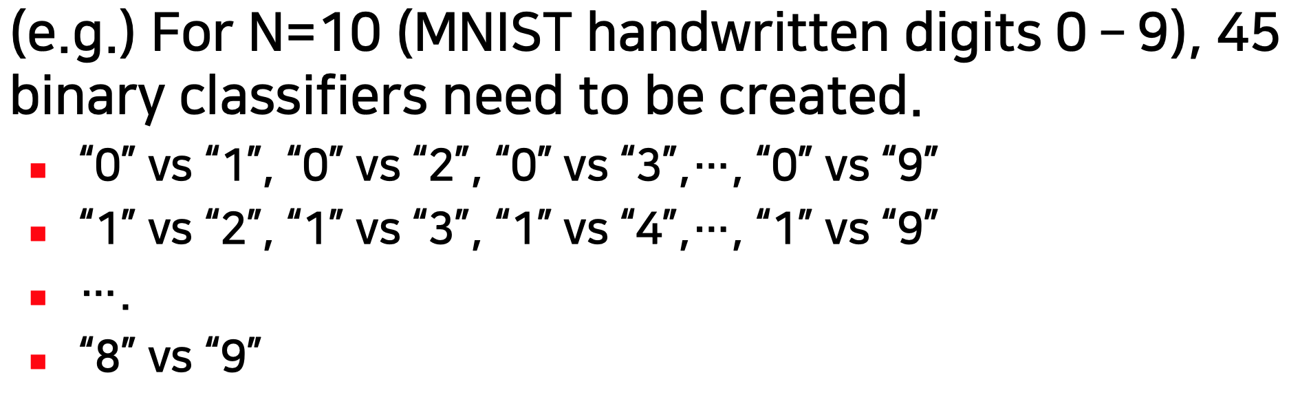 N-class classification을 위해 N*(N-1)/2 binary classifiers가 필요하다.