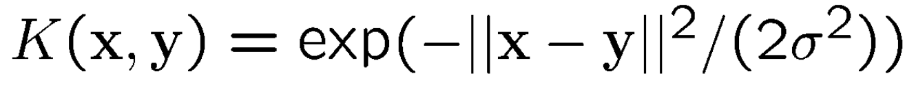 ◼ Gaussian kernel (also called radial basis function (RBF) kernel (with width s)