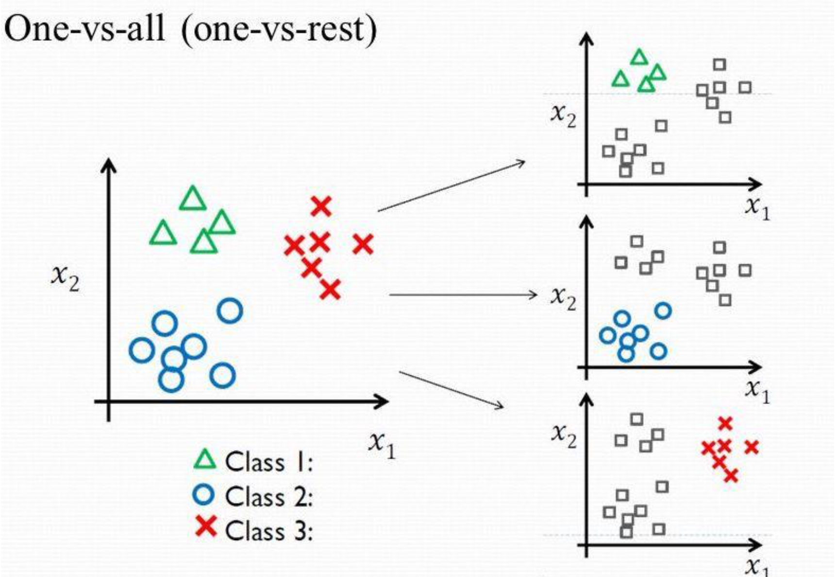 Logistic Regression과 SVM은 이항(2-class) classifier이다. multi-class classification은 모든 binary classification의 출력을 결합하여 수행됩니다.