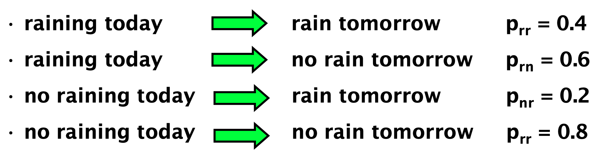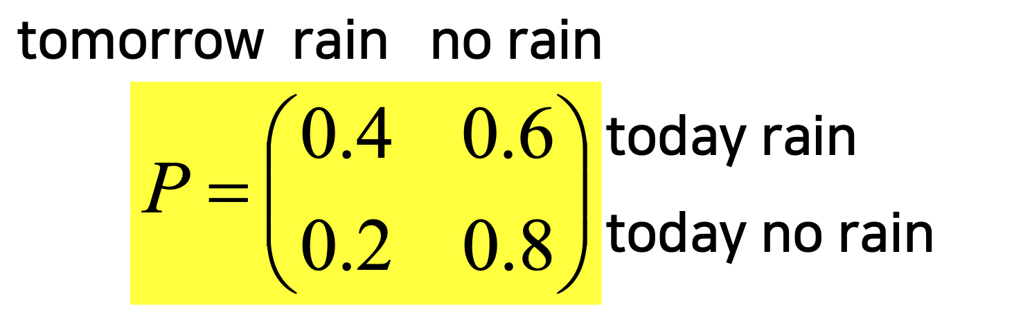 ◼ 주어진 상태 i에서 시작할 확률은 pi이다. 벡터 p는 이러한 시작 확률을 나타낸다.