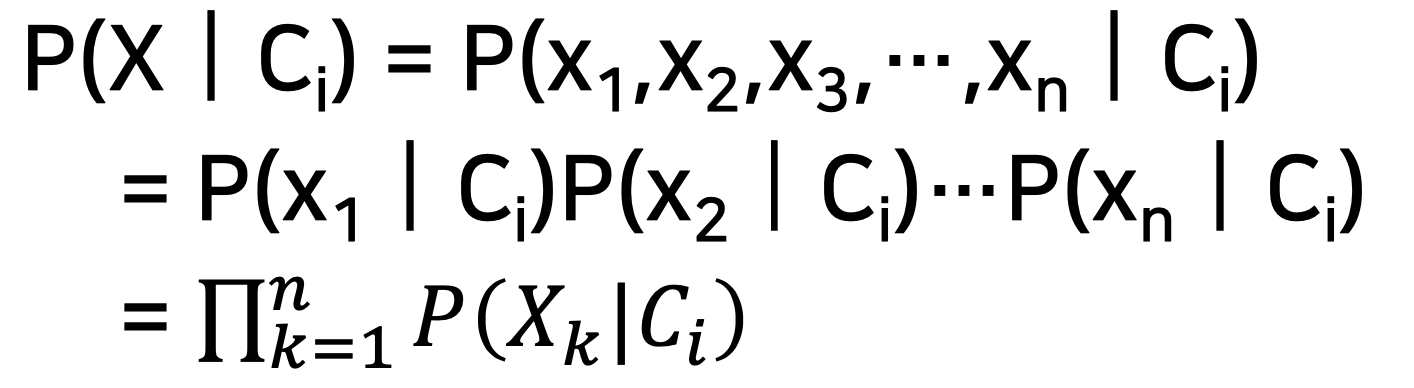 ◼ 큰 n(즉, 특징의 수)을 사용하면 P(X┃Ci)를 평가하는 데 비용이 많이 든다.