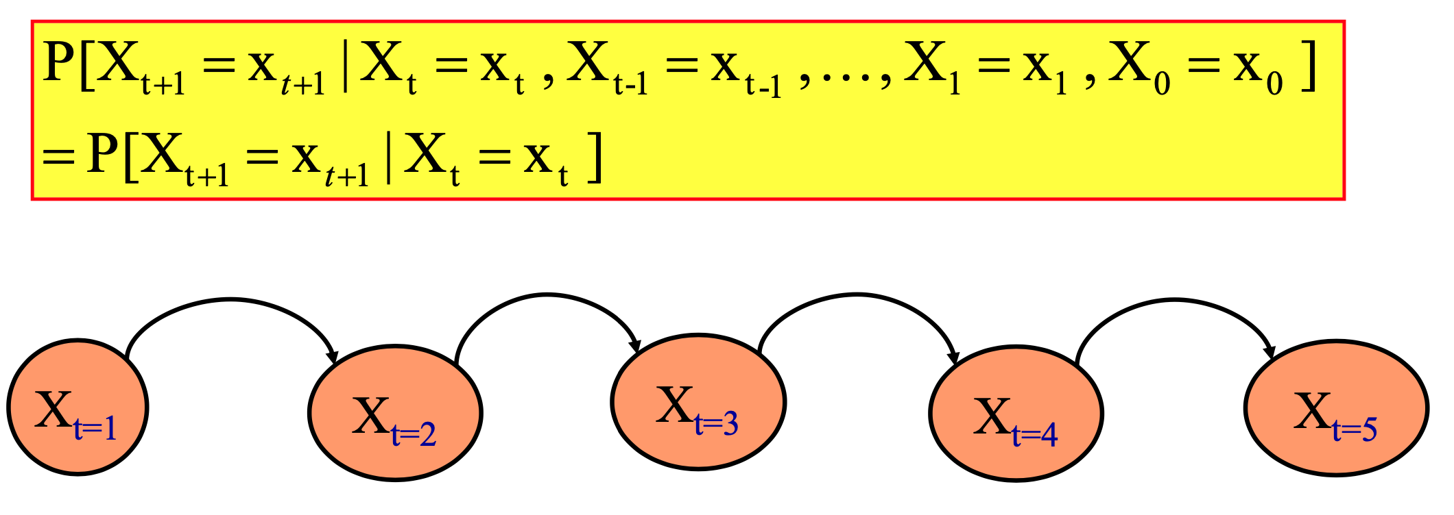 시간 t+1의 시스템 상태는 시간 t의 시스템 상태에만 의존한다.