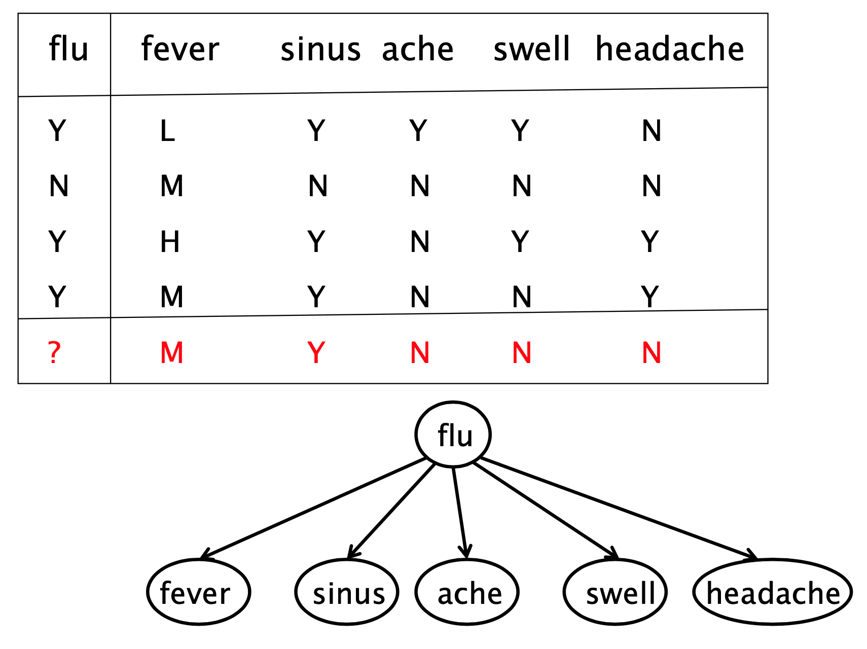 ◼ Naïve Bayes Model은 원인이 주어진 증상의 독립성을 가정한다.