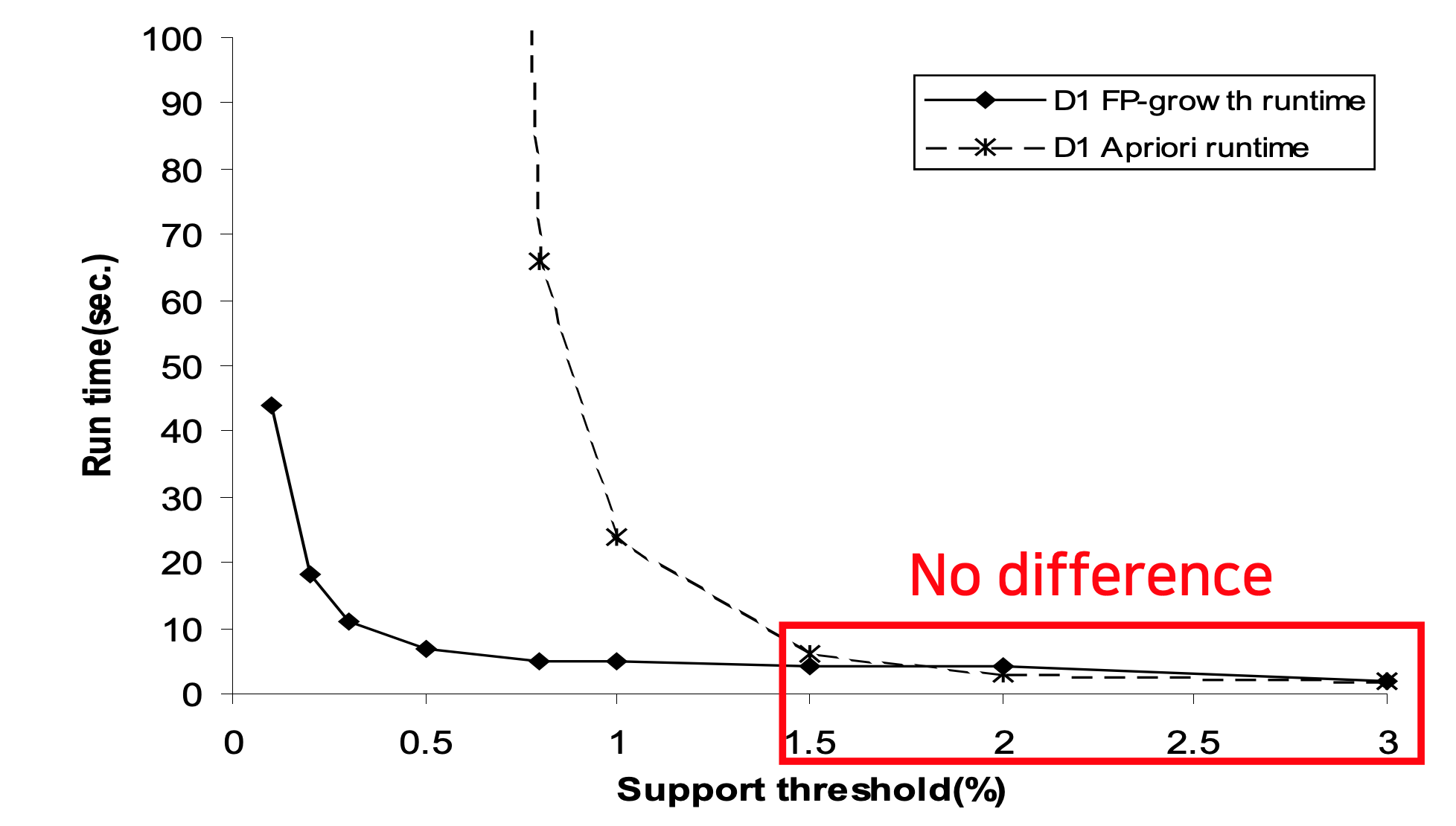 FP-Growth의 장점은 minimum support가 낮을때 나타난다.(1.5% 미만)
