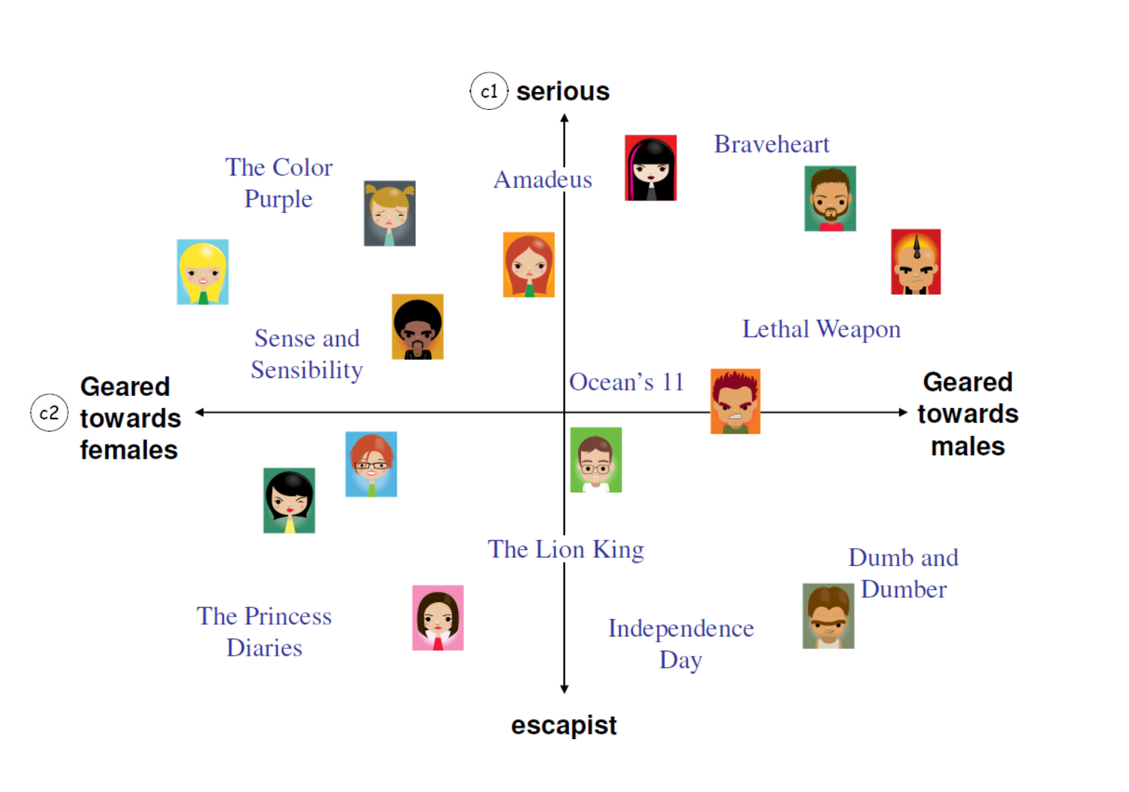 ◼ 목표는 관측된 등급을 설명하는 잠재적 특징(요인)을 찾는 것입니다.
