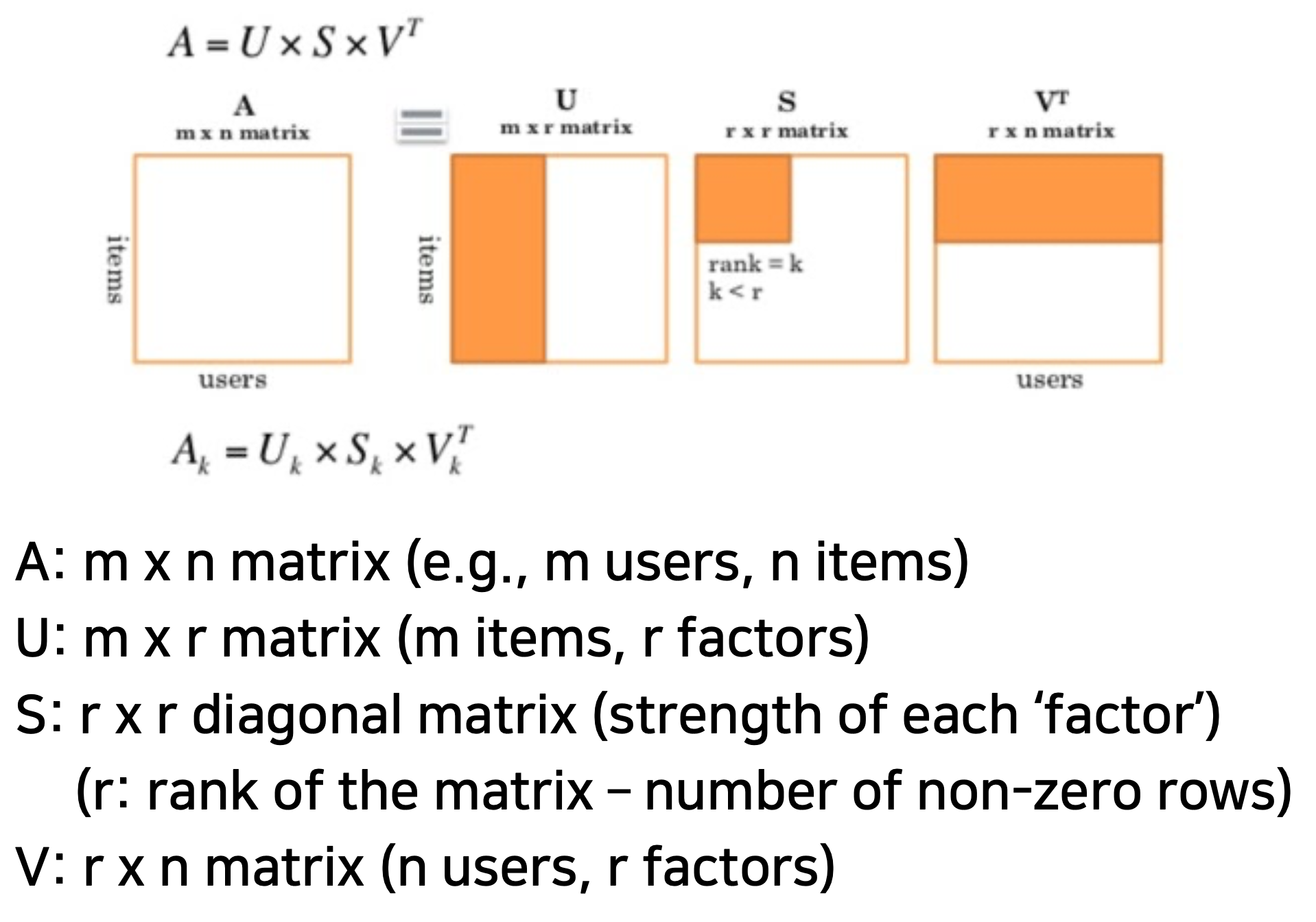 행렬 인수분해는 SVD의 근사치로 볼 수 있다.