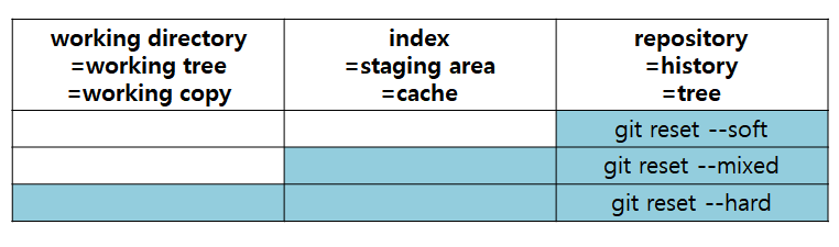 git reset --sotf/--mixed/--hard의 차이점