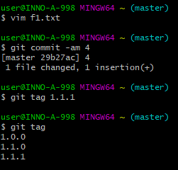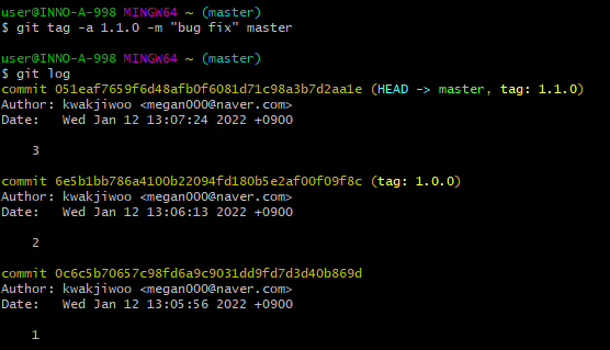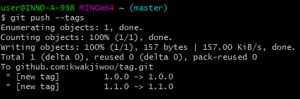 HEAD->master 옆에 tag: 1.1.0이 추가되었다.