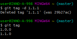 현재 태그가 3개있는 상태에서 1.1.1태그를 삭제해보겠다.