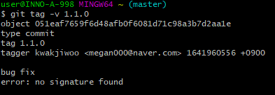 git tag -v 태그이름: 태그에 작성된 설명을 볼 수 있다.