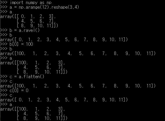 따라서 shape은 바뀌지 않지만 데이터는 바뀐다.