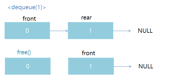 dequeue()함수에서 하는 일은 현재 front의 값을 제거하고, front의 위치를 한칸 뒤로 옮겨주는 것이다.